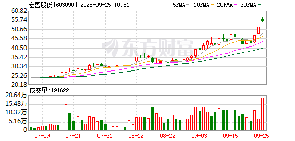 宏盛股份(维权)盘中涨停,已连收3个涨停板,截至9:38,该股报57.18元,换手率6.26%,成交量625.60万股,成交金额3.55亿元,涨停板封单金额为1.35亿元。连续涨停期间,该股累计上涨33.13%,累计换手率为24.57%。最新A股总市值达57.18亿元。
